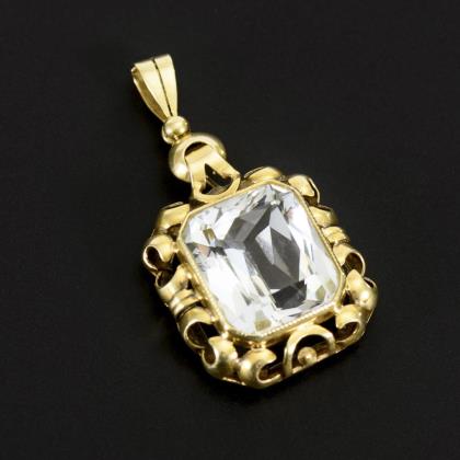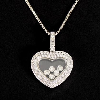 Anhänger mit 79 eingelassenen Brillanten, davon 5 zargengefasste Brillanten beweglich unter Glaseinlagen. Venezianerkette mit Ringfederschließe