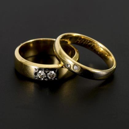 Mittlerer und schmaler Reif mit je 2 kleinen, eingelassenen Brillanten