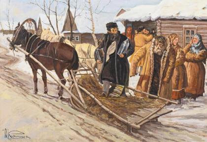 Russischer Maler: Dorfgesellschaft.
