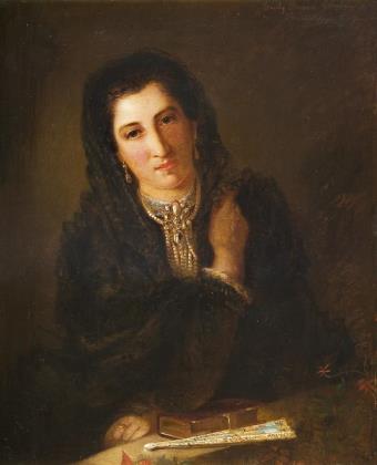 SCHMÄCK-STREGEN, Emilie (1817 London - 1886 Mödling). Damenporträt mit Fächer.
