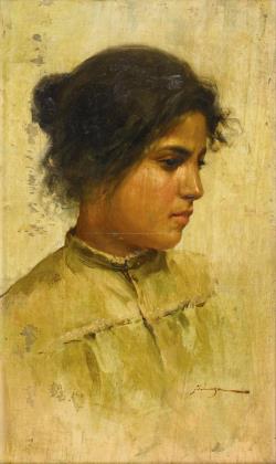 Undeutlich signiert: Porträt einer hübschen jungen Frau.