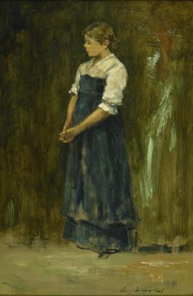 Ölskizze einer jungen stehenden Frau im hellen Licht