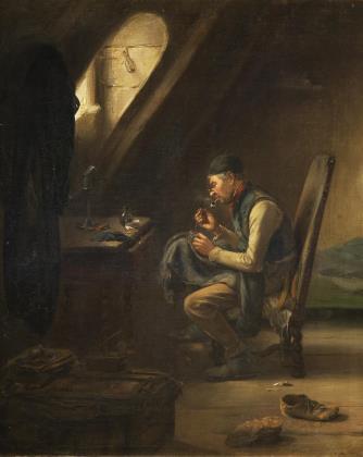 BURGER, Anton (1824 Frankfurt am Main - 1905 Kronberg). Pfeifenraucher in der Dachkammer.