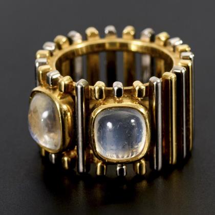 Cabochon und eingelassene Kleinstdiamanten zwischen mittlerer Verlaufschiene