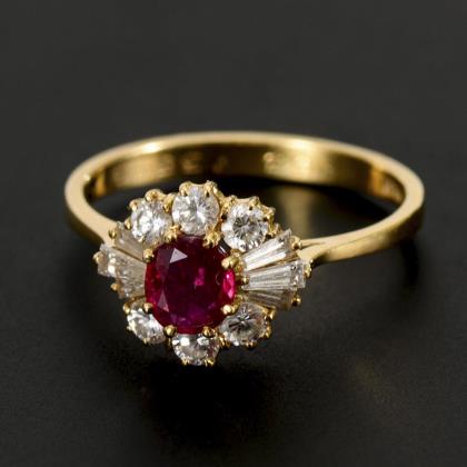 Klassischer Bandring mit Rubin und Brillanten.