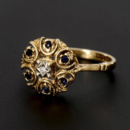 Englischer Ring mit Diamant und Saphiren.