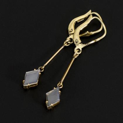 Ohrstecker- und Ohrhängerpaar mit chaton- und zargengefassten Farbsteinen. Ohrhängerpaar mit abgehängten Imitationen. Steckmechanik. Federbügel