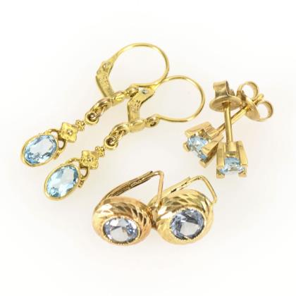 3 Ohrringpaare mit Farbsteinen und Imitationen.