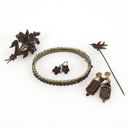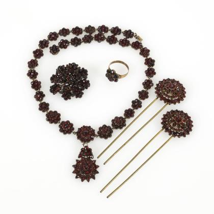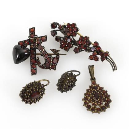 5 Teile Granatschmuck Ende 19. Jh.