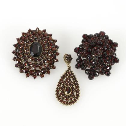 3 Schmuckstücke mit Granaten.