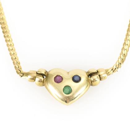 Kleines Collier mit Rubin, Smaragd und Saphir.