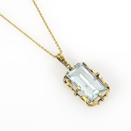Anhänger mit Aquamarin? an Kette.