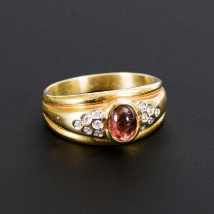 Ring mit Farbstein und Diamanten.