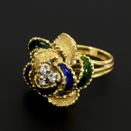 Ring mit Email und Diamanten.