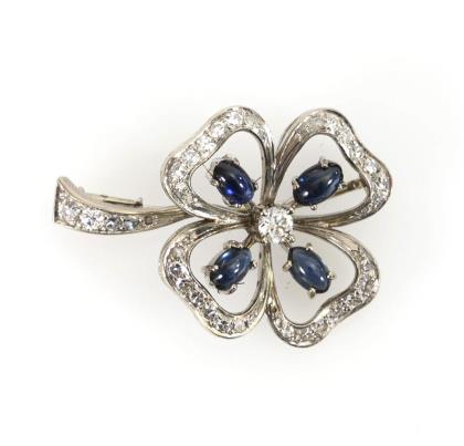 Kleeblatt-Brosche mit Saphiren und Brillanten.