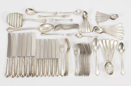 Umfangreiches Silberbesteck für 6-12 Personen. Hanseatische Silberwarenfabrik, Bremen.