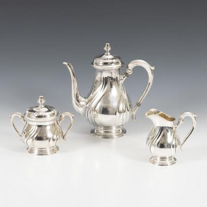 Bauchig-godronierte Form: Kaffeekanne, Zuckerdose und Sahnekännchen