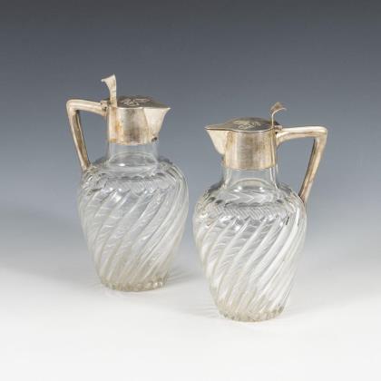 2 Glaskannen mit Silbermontierungen.