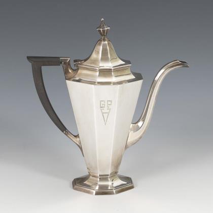 Konische Mokkakanne mit facettierter Wandung, Monogrammgravur GP und Ebenholzgriff