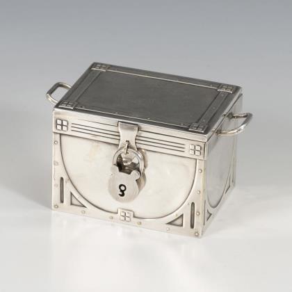 Versilberte Jugendstil-Schatulle mit Lilienrelief.