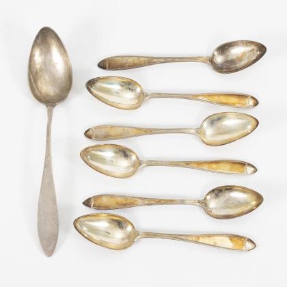 1 Vorlegelöffel und 6 Suppenlöffel Silber.