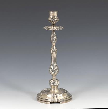 1-flammiger Leuchter mit Balusterschaft und kleinen reliefierten Muschelmotiven