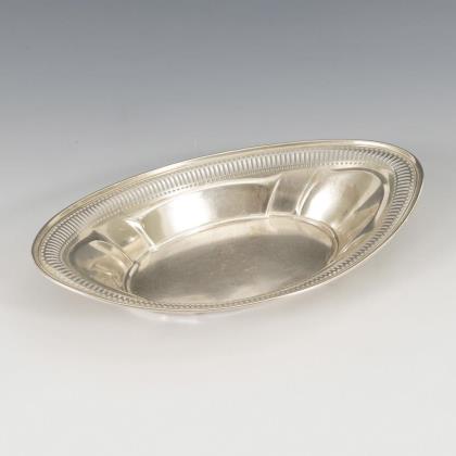 Ovale Silberschale mit stäbchenartig durchbrochenem Rand