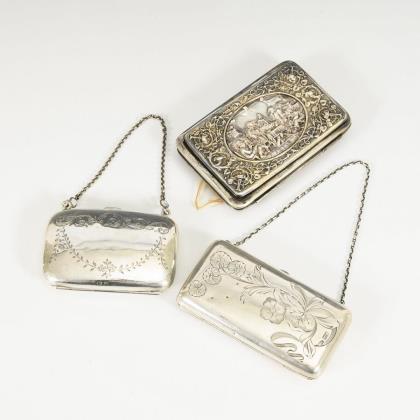 Verschiedene kleine Etuis, 2x floral graviert, 1x figürlich reliefiert