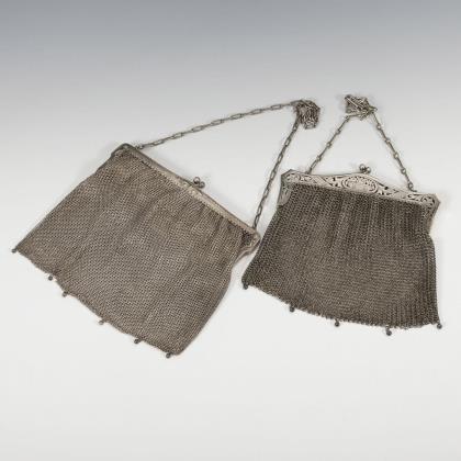 2 elegante Täschchen, jeweils an kurzer Kette. 1x mit Innenfutter