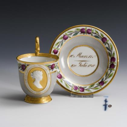 Empire-Tasse mit Biskuitporträt der Königin Luise. KPM Berlin.