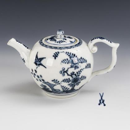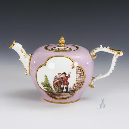Barocke Teekanne mit Fels- und Vogelmalerei. Meissen.