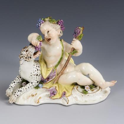 Putto als Bacchus, einen Leoparden mit Trauben fütternd