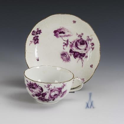 Barocke Tasse mit Purpurmalerei. Meissen.