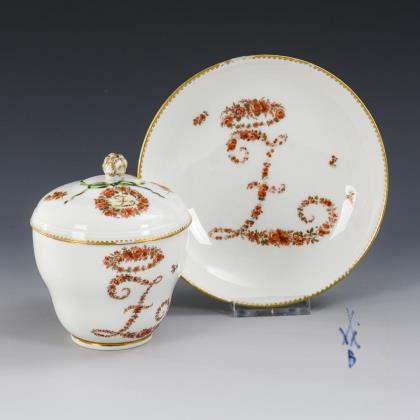 Barocke Deckeltasse mit Blumenmonogramm. Meissen.