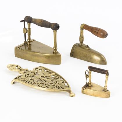 3 Bügeleisen und 1 Untersetzer.