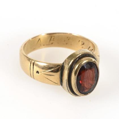 Granat und 2 Halbperlchen, zwischen schmaler Schiene