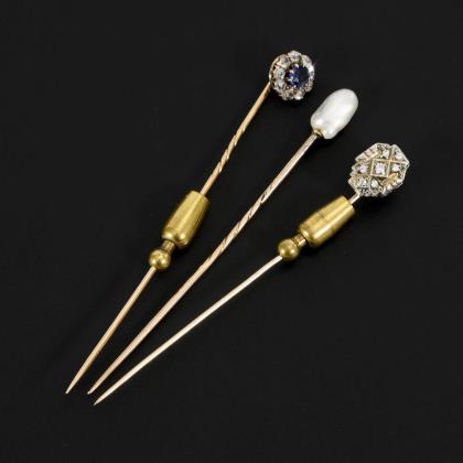 Jugendstil-Krawattennadel in Etui, um 1900.