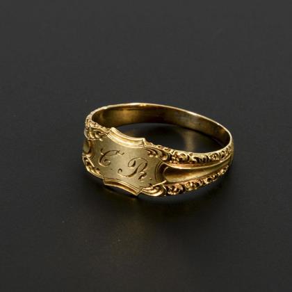 In Hohlform reliefierte, rückseitig geschlossene Zierglieder, an Ringfederschließe
