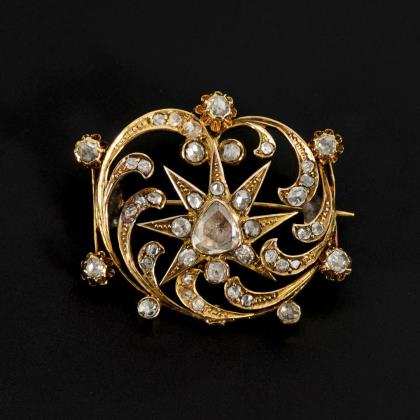 Korallenbrosche mit Altschliff-Diamanten Ende 19. Jh.