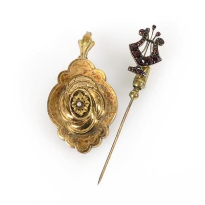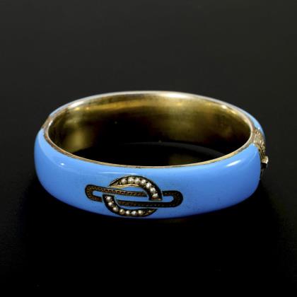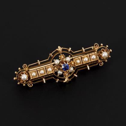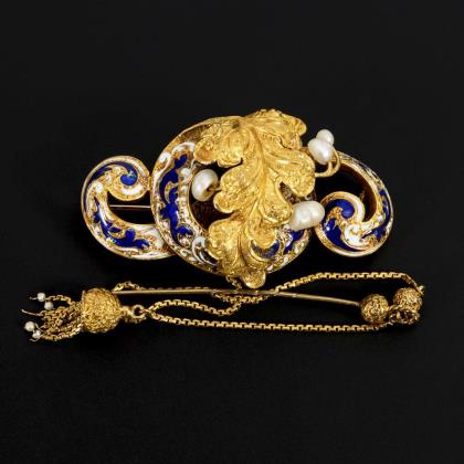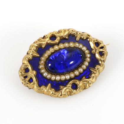 Englische Biedermeierbrosche mit Email und Saatperlen.