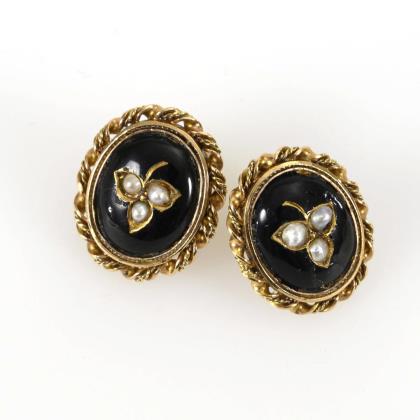 Ohrsteckerpaar mit Email und Perlchen, um 1900.