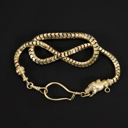 Schlangenkette mit plastisch gearbeitetem Tierkopf, an großem Einhängehaken und Karabiner