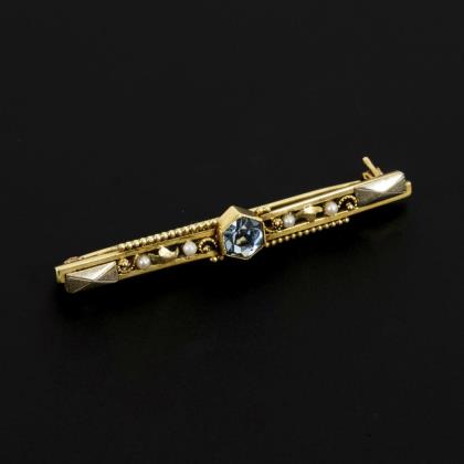 Nadel mit Aquamarin und Saatperlen um 1930.