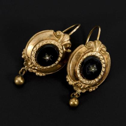 Biedermeier-Ohrhängerpaar mit Altschliff-Diamant.