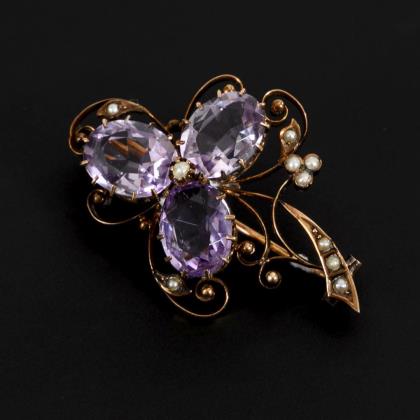 Brosche mit Amethysten und Saatperlen, um 1900.