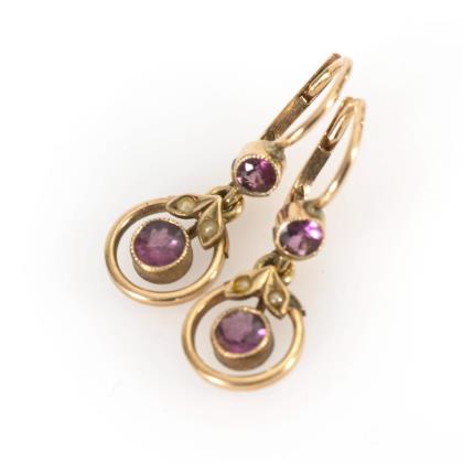 Wiener Ohrhängerpaar mit Farbsteinen und Perlchen, um 1900.