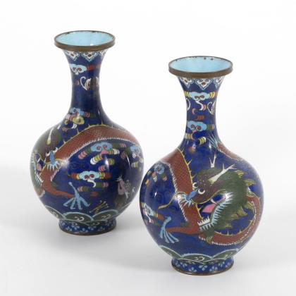 Paar Cloisonné-Vasen mit Drachenmotiv.