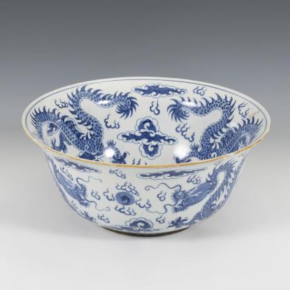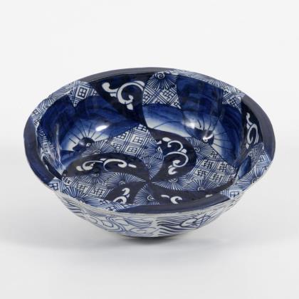 Ungewöhnliche Schale in Unterglasur-Blaumalerei.
