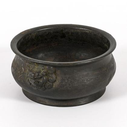 Kleine Bronzeschale mit Taoti Masken.
