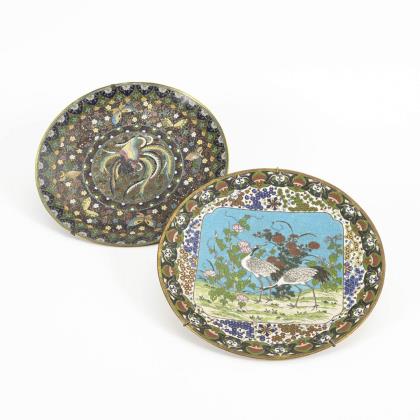 2 fein emaillierte Cloisonné-Teller.